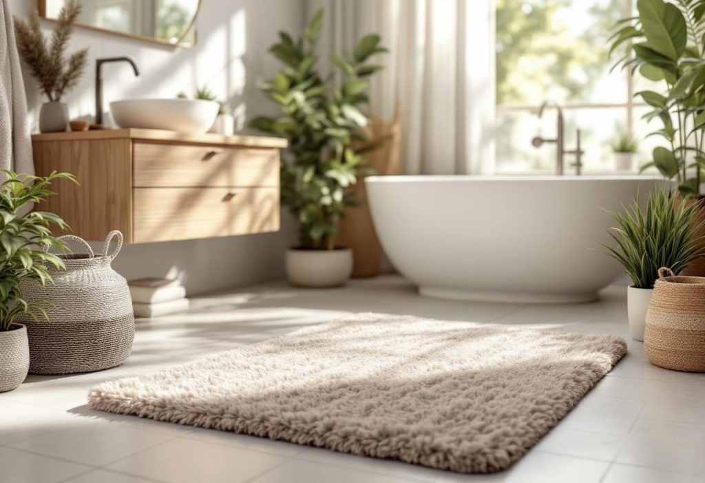 Si votre salle de bains dispose d’un espace plus atypique, envisagez un tapis de forme irrégulière ou des modèles modulaires que vous pouvez assembler pour couvrir les zones souhaitées. Ces options offrent une flexibilité appréciable, surtout si vous aimez reconfigurer fréquemment votre espace de vie.